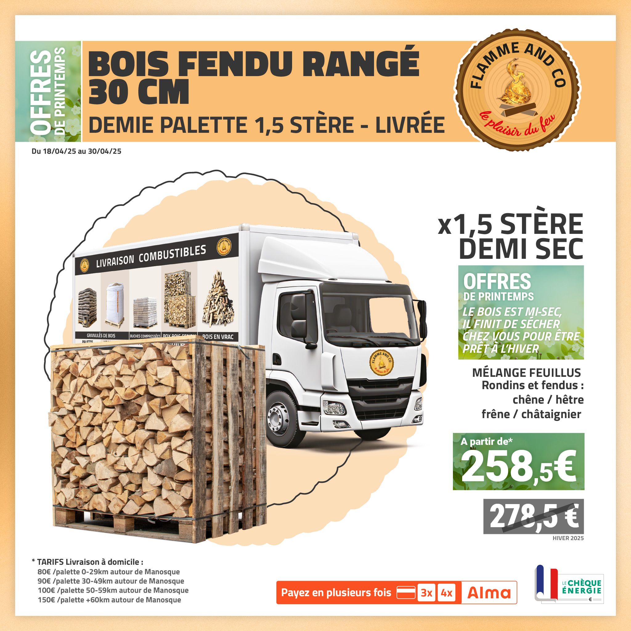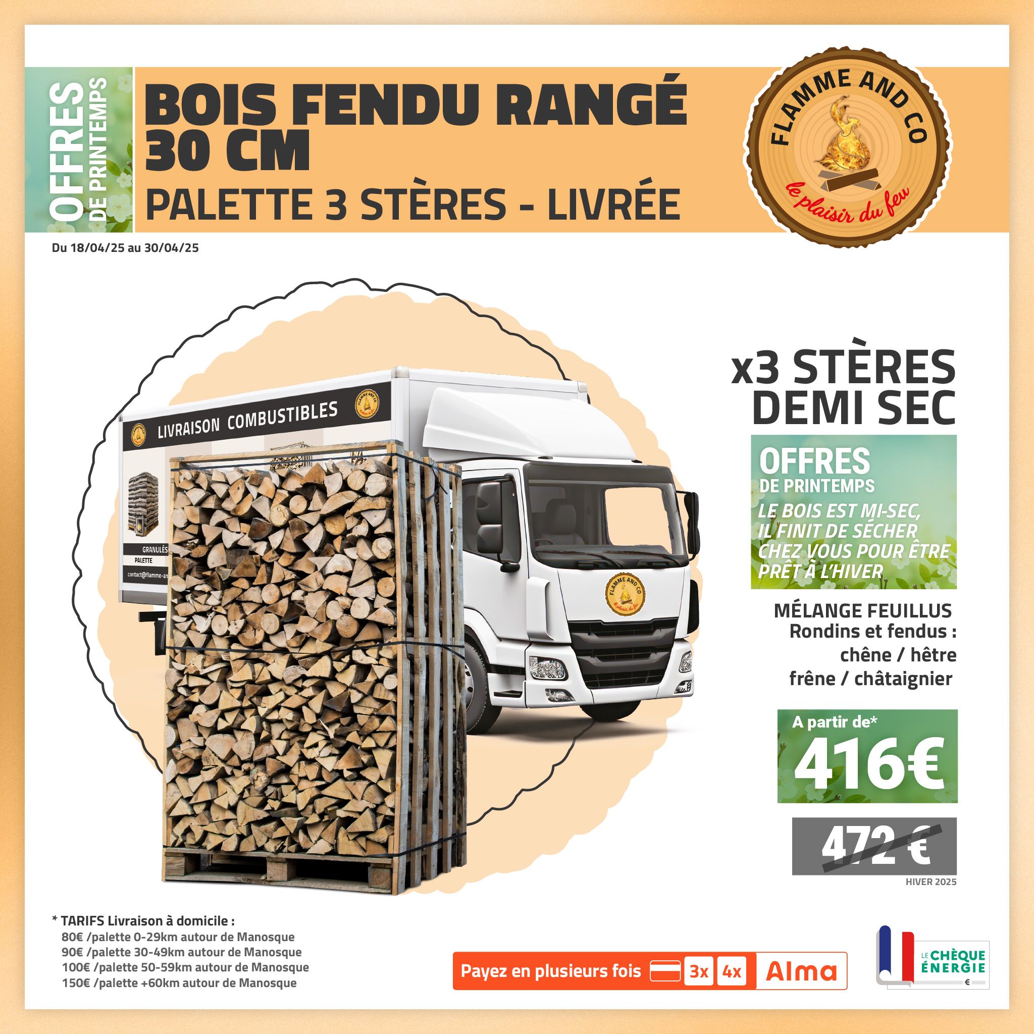 Notre offre bois de chauffage en vrac ou palettes :