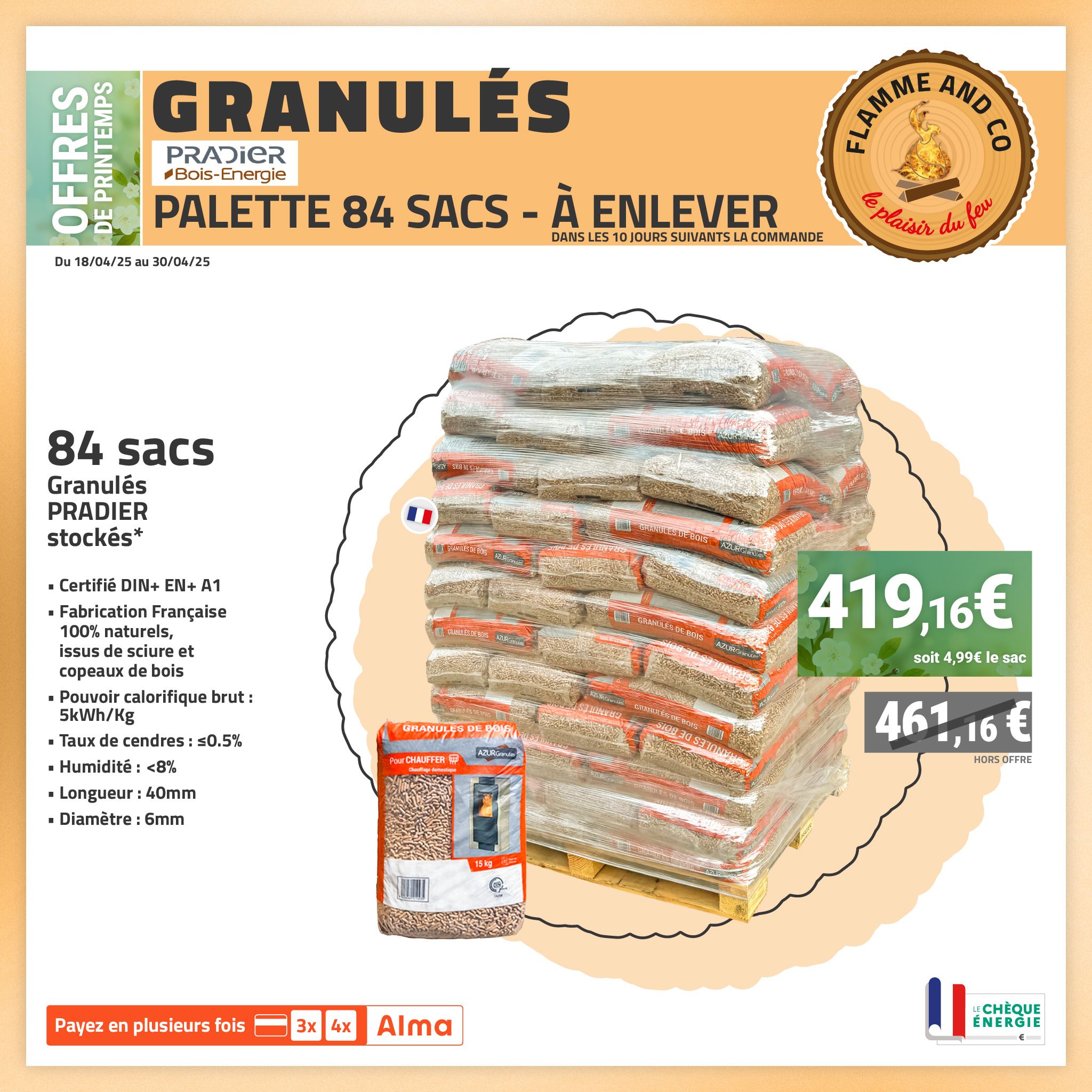 nous avons décidé cette année de faire confiance au granulés Pradier fabriqué au centre de la France, un granulés issu de production de sciure local et de leur propre production de déchet via leur usine de production de bois. Nous vous proposons se granulés à un prix très compétitif, certifié Din+ et PEFC.