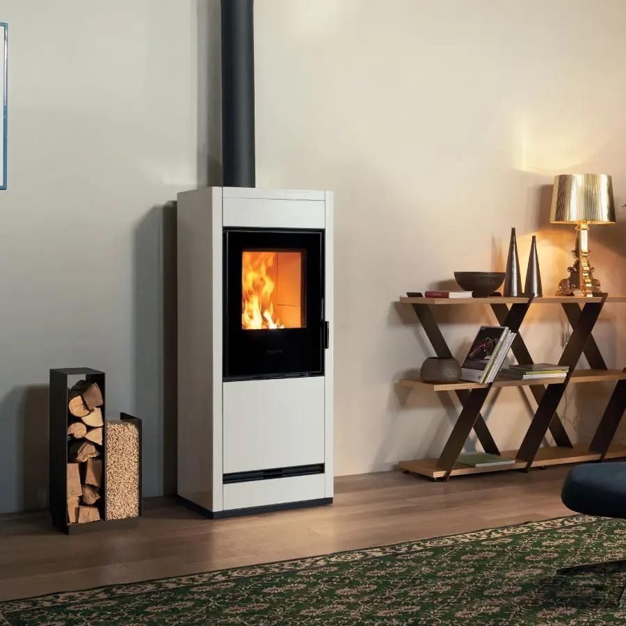 - Changement automatique de combustible : Il passe automatiquement du bois aux pellets, avec la possibilité d'utiliser la flamme du pellet pour allumer le bois.